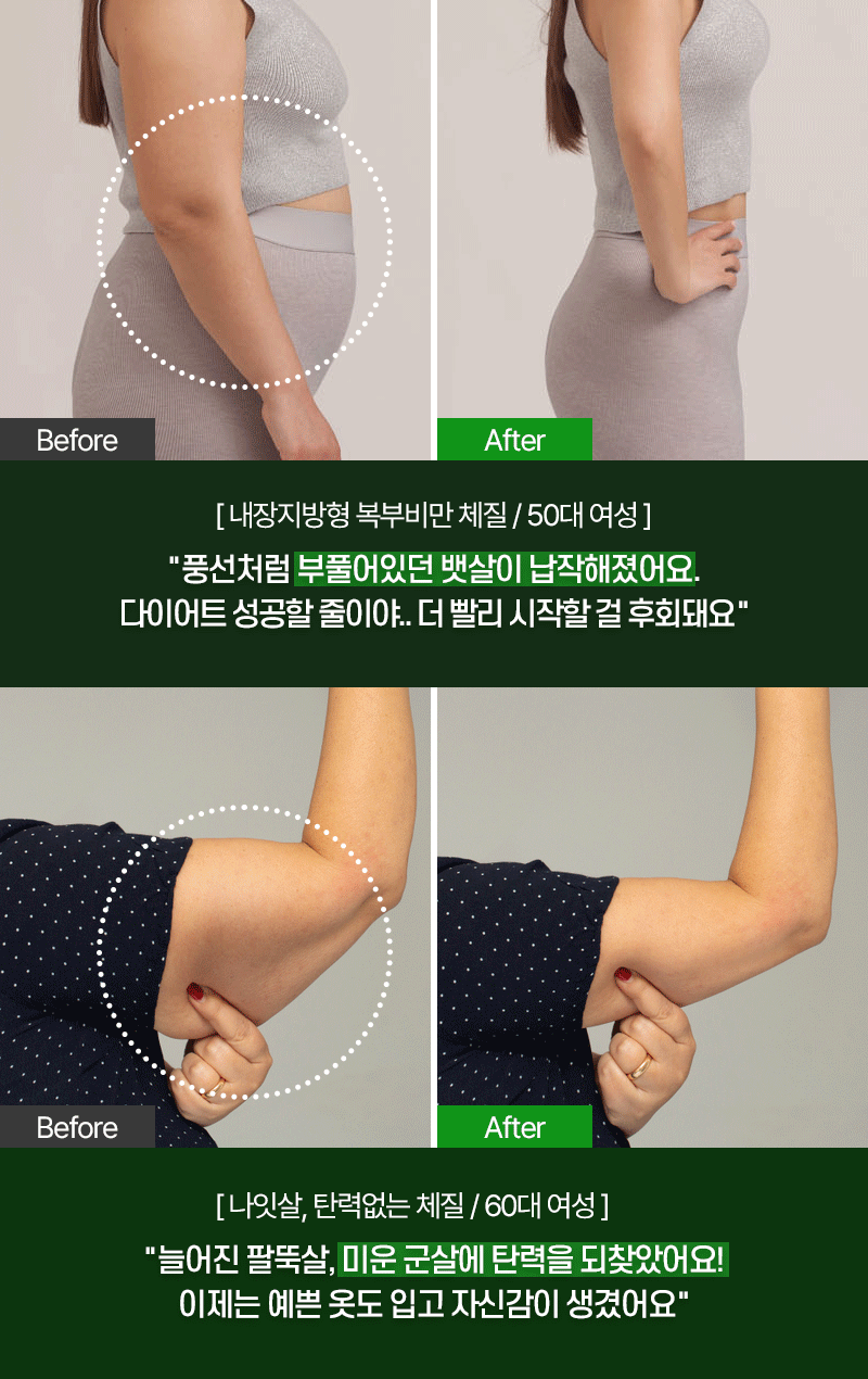 이러한 2중 분해 시스템 덕분에, 일반적으로 지방이 잘 빠지지 않는 부위나 복부 지방 또한 집중적으로 감소하게 된다. 단순히 지방을 태우는 것을 넘어, 체내 환경 자체를 정화하여 지방 축적을 방지하고, 효율적인 체중 관리를 돕는 근본적인 변화를 만들어낸다.