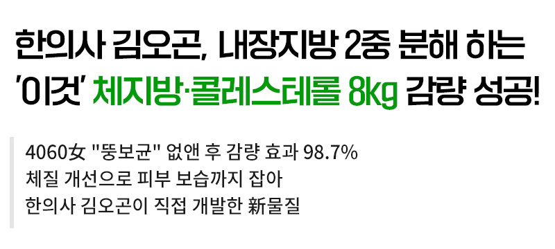 김오곤 한의사가 개발한 신비감 다이어트는 이런 체내 지방 축적 문제를 집중적으로 관리하여 손쉽게 분해하는 新물질을 개발하여 다이어트의 패러다임을 바꿔놓았다.