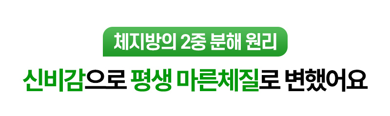 신비감 다이어트는 기존 다이어트의 한계를 넘어서 체내에 쌓인 지방을 두 단계로 분해하여 빠르고 효율적인 체형 변화를 이끈다. 2중 분해 시스템은 체지방이 단순히 연소되는 것이 아니라, 체내에서 두 단계로 분해되어 효율적으로 배출되도록 돕는다.